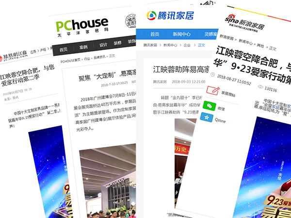 網(wǎng)絡(luò)信息時代,互聯(lián)網(wǎng)平臺宣傳必不可少,易高家居與多家知名媒體合作,包括但不僅限于百度搜索、360搜索、今日頭條、新浪家居、搜狐、騰訊、鳳凰資訊等。