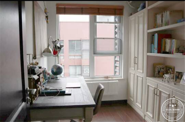 這是一個(gè)獨(dú)立的書(shū)房,工作學(xué)習(xí)的時(shí)候可以安靜的思考。里面的書(shū)桌和書(shū)柜都是獨(dú)立的,超大的書(shū)柜空間讓書(shū)都有了自己地盤(pán)。