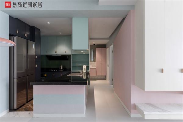 餐廚一體化設計,可以選擇在廚房和餐廳之間做一個吧臺,既可以當做用餐臺使用,還可以減少廚房收納的壓力。節(jié)省了空間還具備基本的功能。