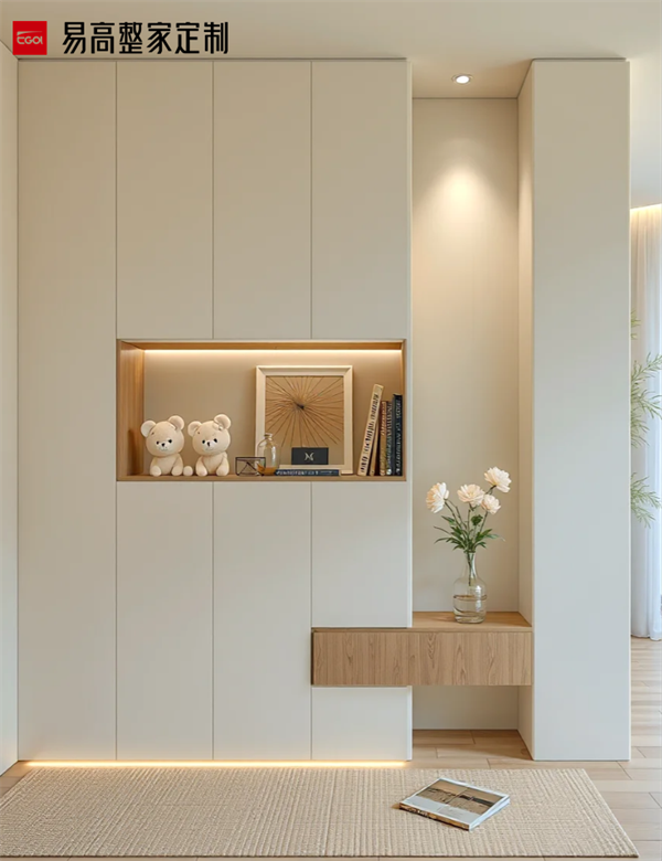 風(fēng)格協(xié)調(diào)需與整體家居統(tǒng)一,例如現(xiàn)代簡約風(fēng)可搭配玻璃或金屬飾條,中式風(fēng)格可融入格柵透光板。若空間狹小,可采用嵌入式或壁掛式設(shè)計節(jié)省地面空間。對于有孩或養(yǎng)寵的家庭,可增設(shè)兒童物品區(qū)或?qū)櫸镉闷穼S脤影?。墻面預(yù)留裝飾畫位置提升品位。裝飾不宜多,適度留白更能體現(xiàn)高級感。