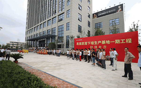 8月28日,易高家居下塘生產(chǎn)基地一期工程封頂儀式隆重舉行。易高家居董事長孔慶松攜供應(yīng)商代表、施工方代表以及易高家居員工代表逾300人共同見證了這一歷史性時刻。