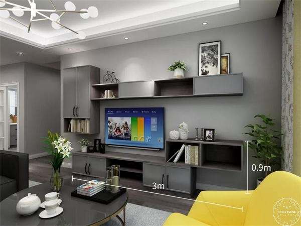 客廳的裝修關(guān)鍵詞是寬敞、實(shí)用,可以通過打造電視墻儲物柜擴(kuò)展空間,給人清爽、明亮的感覺。