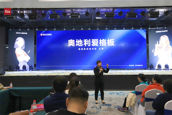 商學(xué)院高級(jí)培訓(xùn)講師王琴圍繞產(chǎn)品設(shè)計(jì)理念、工藝創(chuàng)新、功能環(huán)保、選材用料等對(duì)易高2023春季新品進(jìn)行重點(diǎn)解讀,并就行業(yè)領(lǐng)先的激光封邊工藝和奧地利進(jìn)口愛格板的優(yōu)勢和特點(diǎn)進(jìn)行詳解。