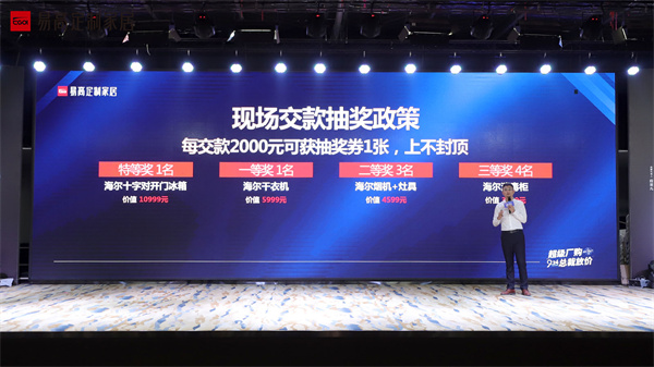 ▲易高家居主動(dòng)營銷總監(jiān)孫宇發(fā)布優(yōu)惠政策