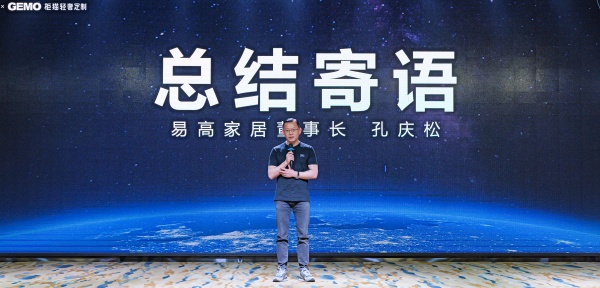 ▲易高家居董事長(zhǎng)孔慶松發(fā)表總結(jié)講話(huà)